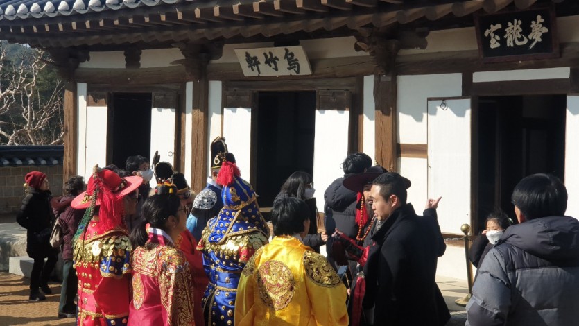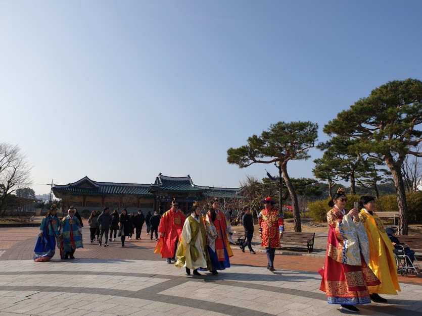 다양한 복장을 착용하고 오죽헌 일대를 돌며 행차 체험을 하며