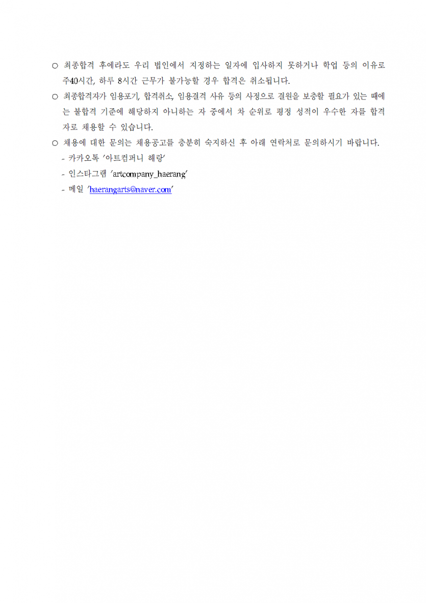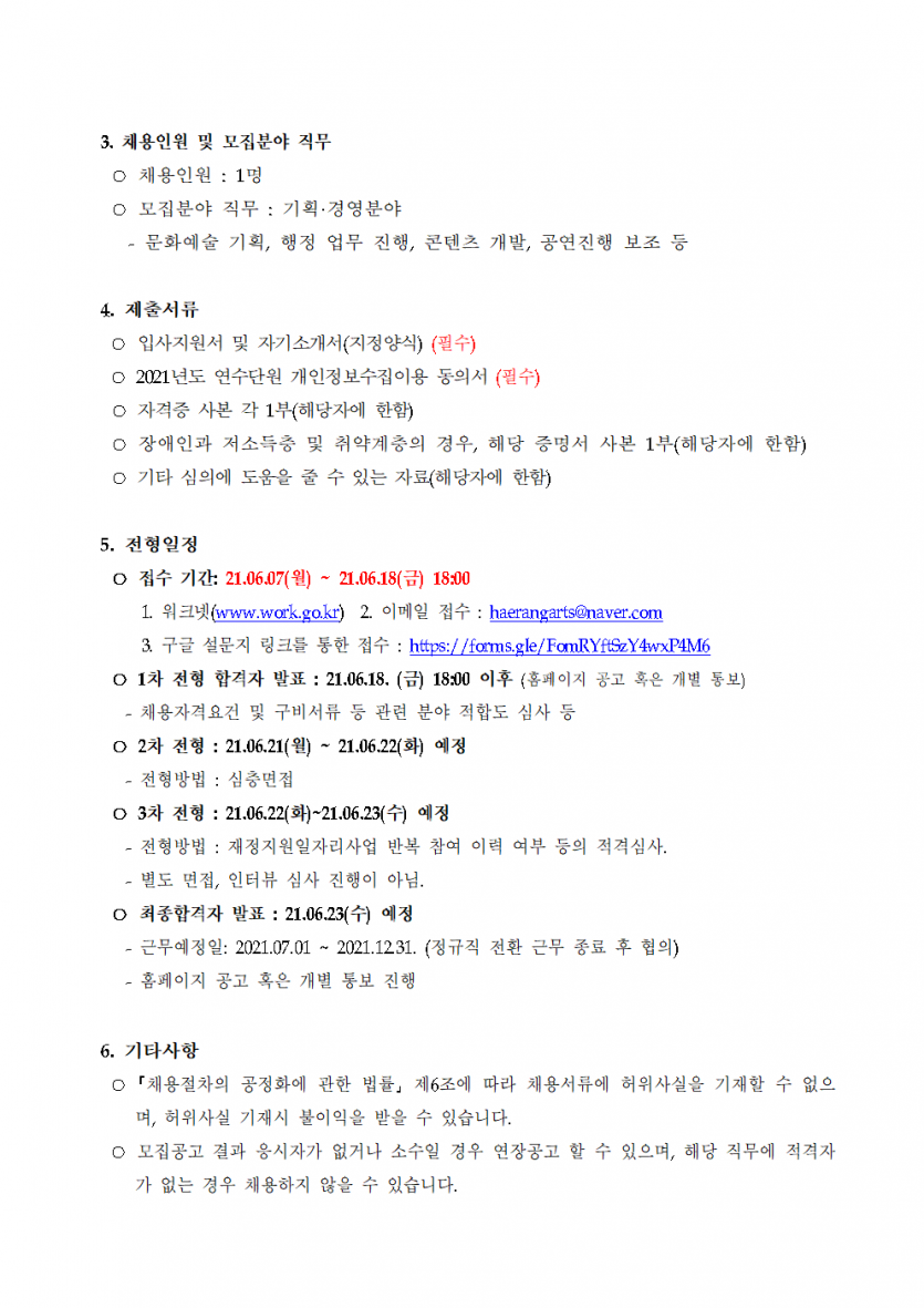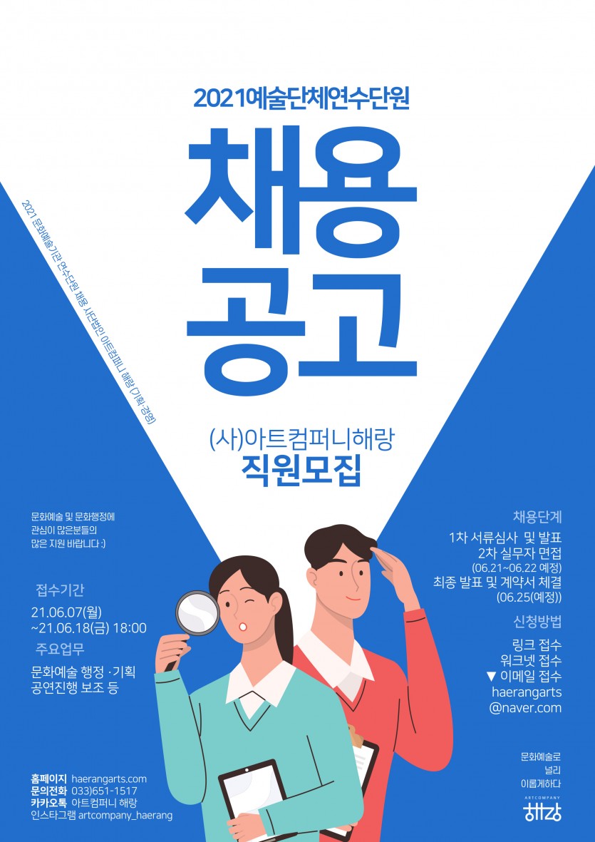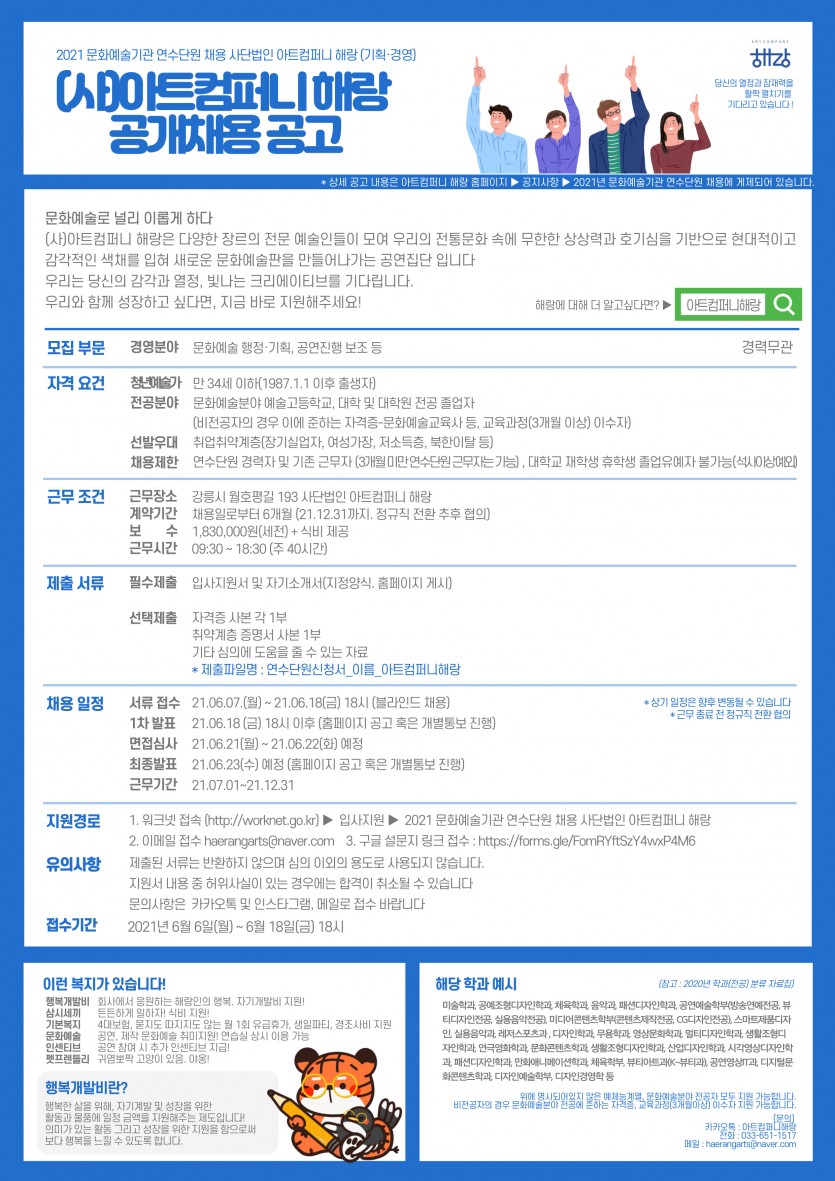 ★2021년도 문화예술기관 연수단원 채용(사단법인 아트컴퍼니 해랑)★ (추가모집)