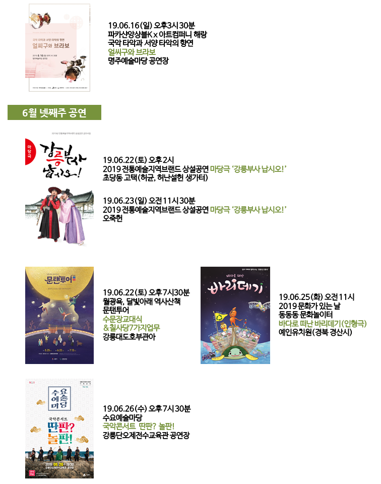 -06/26() 오후 730[아트컴퍼니 해랑] 2019 수요예술마당 국악콘서트 딴판? 놀판! - 강릉단오제전수교육관 공연장