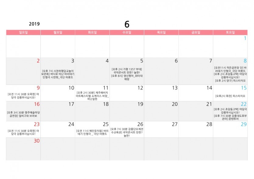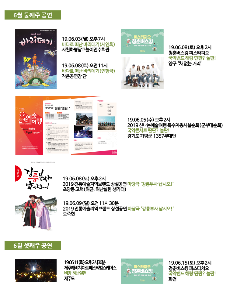 6월 공연 일정 안내 입니다 :) (아트컴퍼니 해랑, 극단 마롯뜨, 국악밴드 해랑)