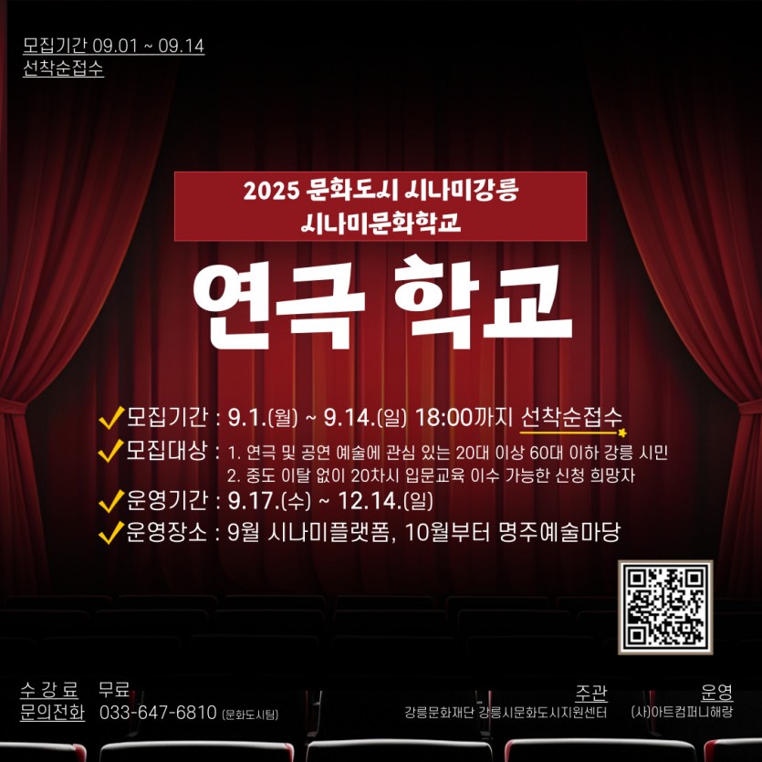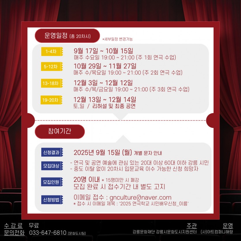 2025 문화도시 시나미강릉 시나미문화학교 <연극 학교> 모집!!