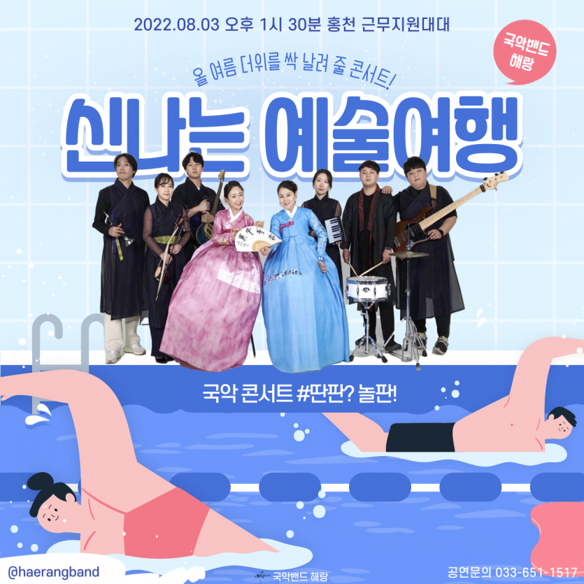 - 다음글2022년 신나는 예술여행 국악밴드 해랑 국악 콘서트 '딴판? 놀판!' 22.08.12