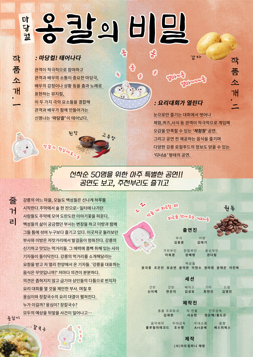 강릉관광브랜드공연 프레페스티벌 [마당컬 '옹칼의 비밀'] 페이지 정보 작성자 최고관리자 댓글 0건 조회 629회 작성일 23-05-08 13:06 본문 마당컬 [옹칼의 비밀] 관련링크 https://tickets.interpark.com/goods/23006348 1160회 연결 목록 답변 이전글강릉특화문화예술공연_두부대첩:초당두부의 비밀 23.06.19 다음글뮤지컬 강릉야화 홍장편 23.03.14 댓글목록 댓글목록 등록된 댓글이 없습니다.