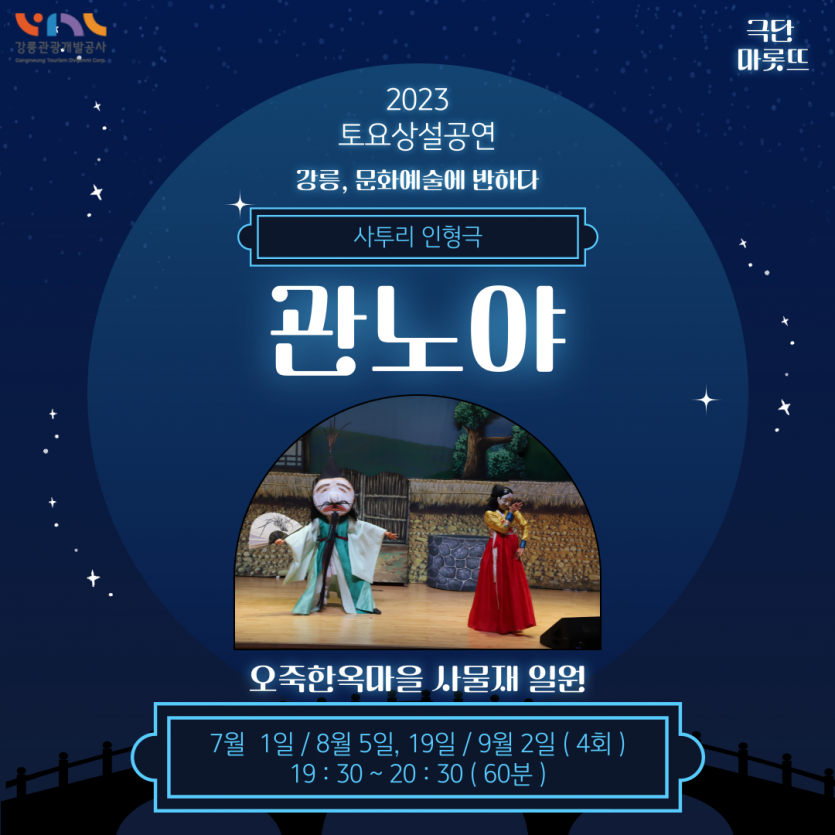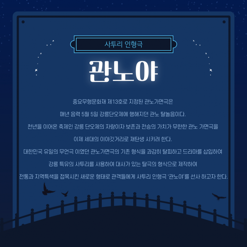 강릉특화문화예술공연_사투리 인형극 '관노야' 페이지 정보 작성자 최고관리자 댓글 0건 조회 616회 작성일 23-06-19 16:27 본문 강릉특화문화예술공연_사투리 인형극 '관노야' 목록 답변 이전글역사를 노래하다. 옴니버스 음악극 '그날에' 23.07.25 다음글강릉특화문화예술공연_두부대첩:초당두부의 비밀 23.06.19 댓글목록 댓글목록 등록된 댓글이 없습니다.