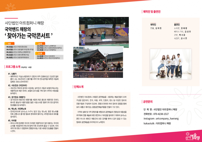 2018 신나는예술여행 국악밴드해랑의 찾아가는 국악콘서트 일정 안내