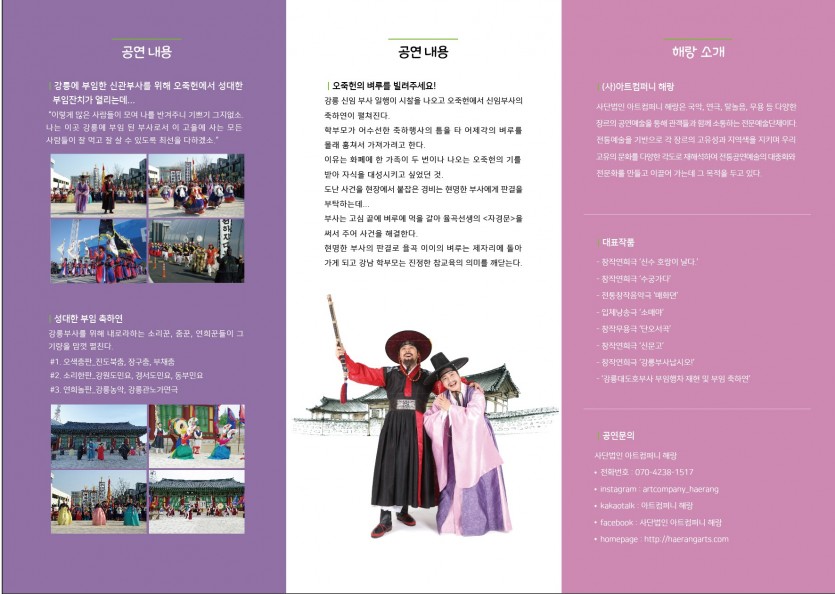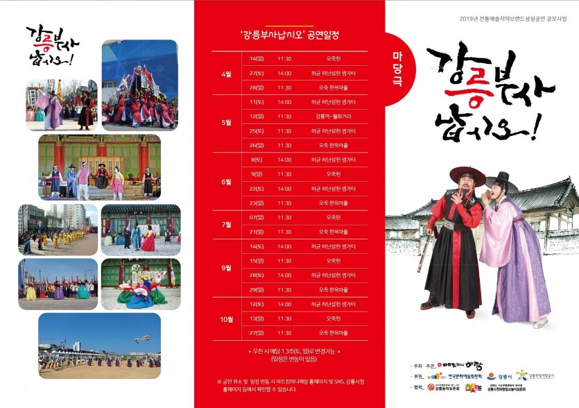 2019 전통예술지역브랜드상설 '강릉부사납시오' 공연일정 안내입니다 페이지 정보 작성자 최고관리자 댓글 0건 조회 2,104회 작성일 19-04-09 19:09 본문 2019 전통예술지역브랜드상설 '강릉부사납시오' 공연일정 안내입니다 :) 목록 답변 이전글★2019해랑신작★ 몽유림에서 노닐다 공연 및 예매 안내 19.10.29 다음글♬3월 공연 일정 안내 입니다 :) 19.03.21 댓글목록 댓글목록 등록된 댓글이 없습니다.