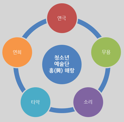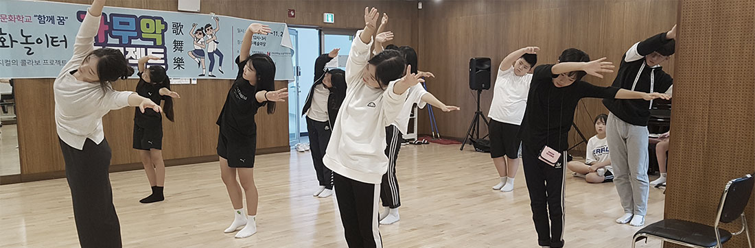 - 청소년들이 문화예술을 통해 자신만의 이야기와 몸짓을 내면적 스토리에서 외면적 스토리로 표현하며 이를 통해 치유와 건강한 삶을 위한 긍정적인 효과를 기대 할 수 있는 실제적인 참여교육을 진행한다. - 청소년 누구나 함께 참여할 수 있으며 현 시대에서 느끼는 정서와 감성에 대해 서로 소통하고 우리의 가, 무, 악을 기반으로 다양한 소리와 몸짓을 표현해본다. 더 나아가 창의적 예술창작교육을 통해 지역의 어린이 및 청소년들이 문화예술을 쉽게 접하고 이를 발전시켜 청소년예술단으로서의 진로를 선택 할 수 있게 한다.